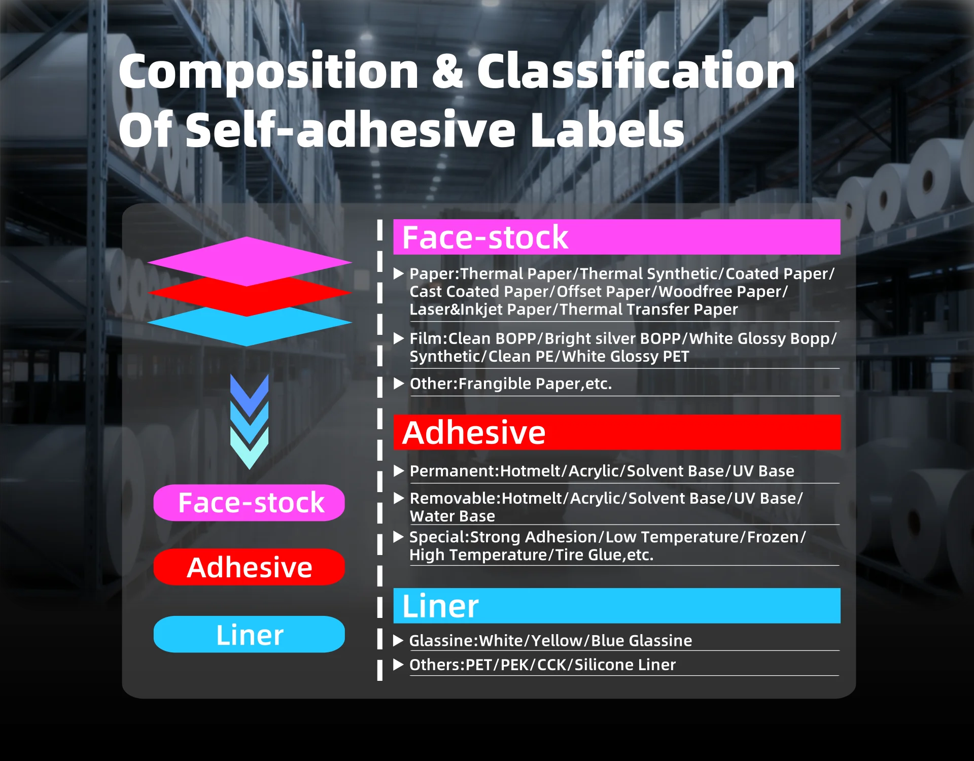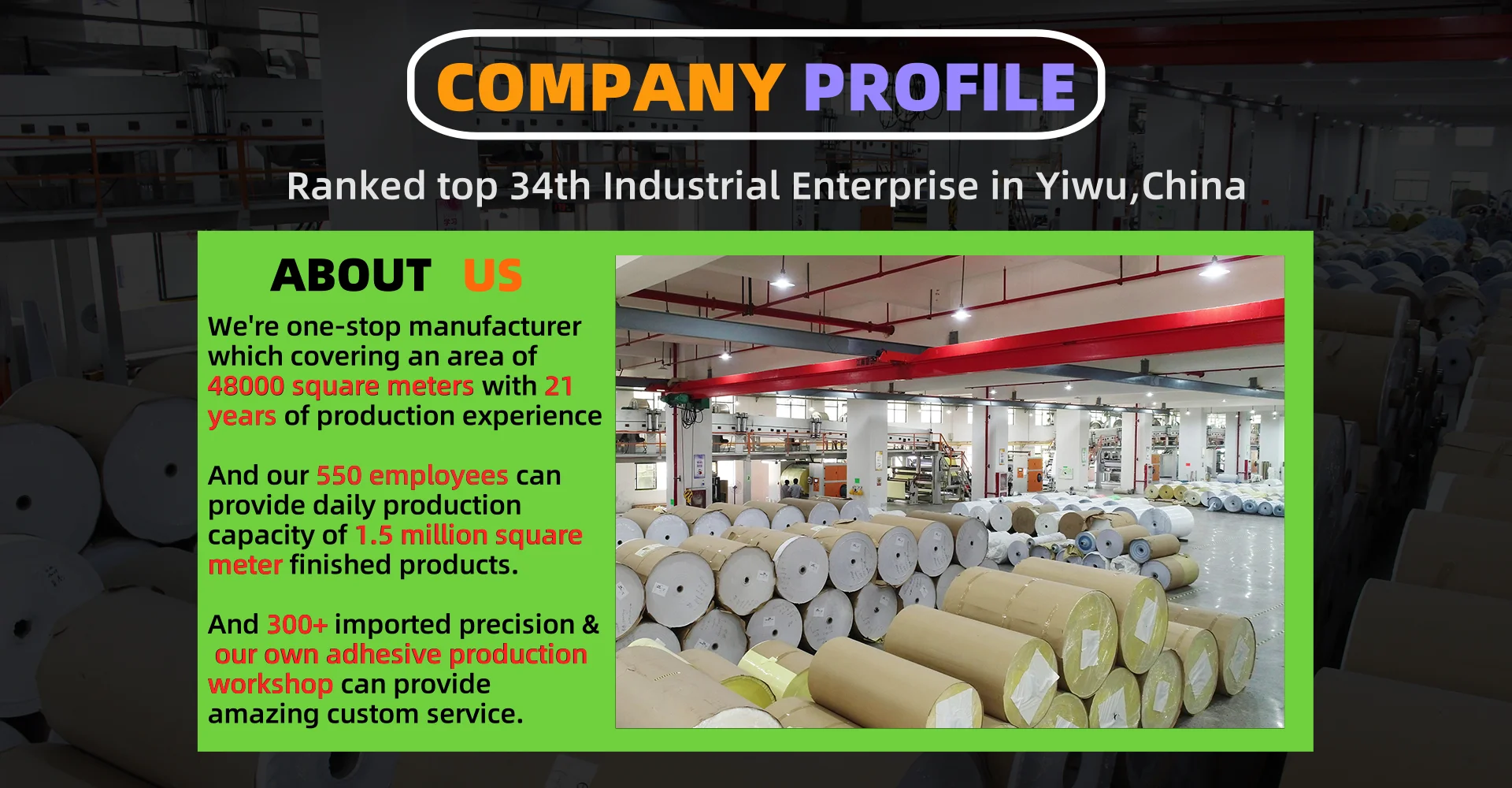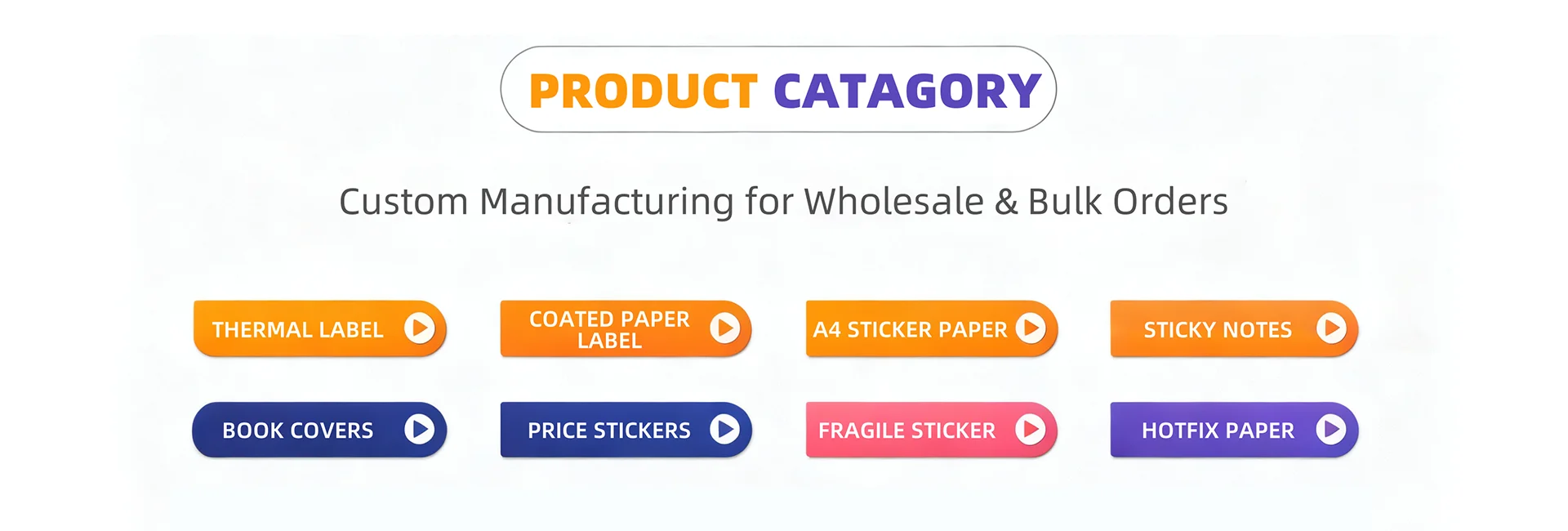Produk utama: Label Transfer termal, Label Thermal langsung, sampul buku merekat sendiri, catatan tempel, Label Inkjet